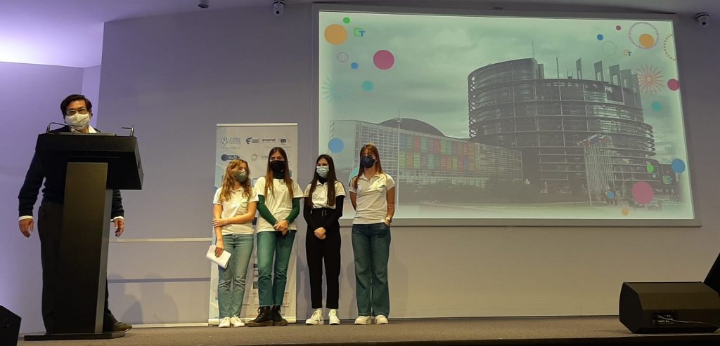 Las jóvenes del proyecto Comen 2.0 de los retos Finnova – Girls4Tech Startup Europe Awards, premiadas en la Conferencia de Horizonte Europa en Valencia